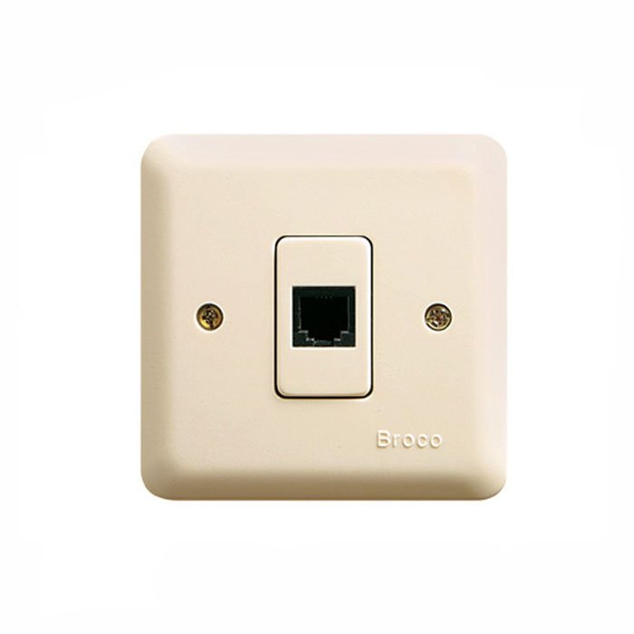 Broco Outlet Telephone New Gee Cream 517111 merupakan salah satu merek yang sudah lama berkecimpung didalam bidang alat listrik rumah tangga berupa socket telephone. Produk ini banyak sekali digunakan dipasaran karena bermutu baik dan berharga ekonomis. Untuk kontaknya mereka menggunakan bahan kuningan.