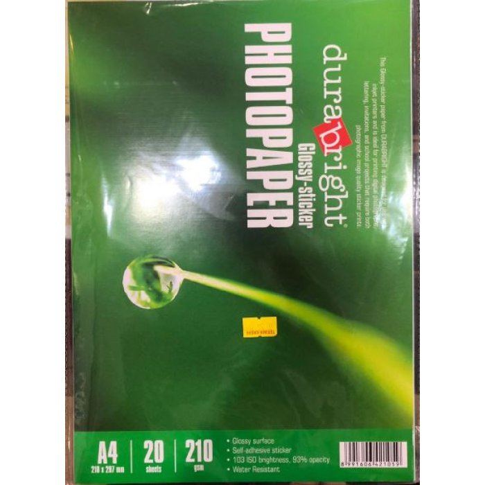 Kertas stiker merk durabright dapat di print menggunakan printer canon, HP atau Epson.