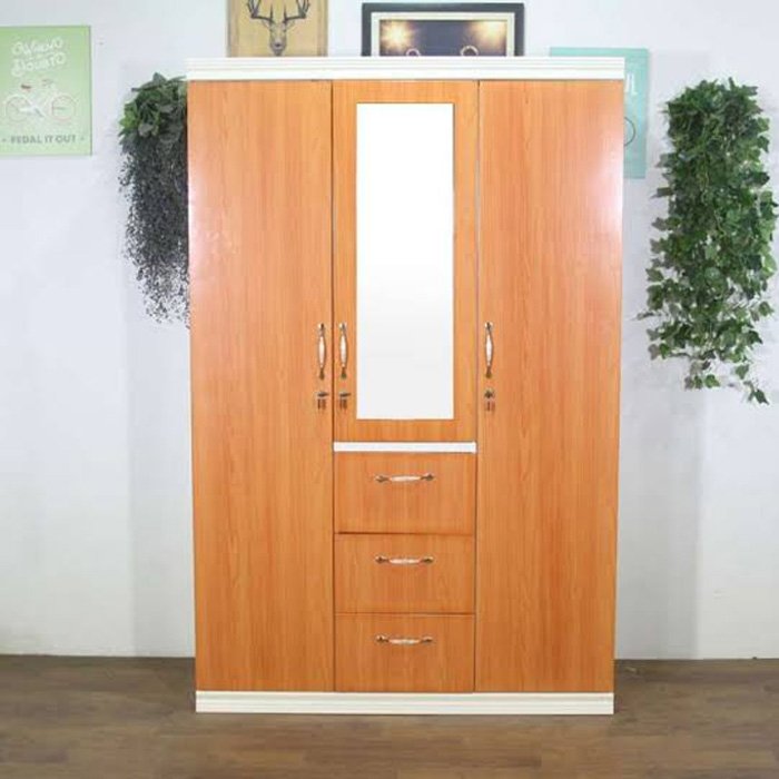 Menata rapi pakaian akan menjadi lebih mudah. Lemari ini memiliki kapasitas ruang yang cukup luas. Pada bagian depan pintu pun dilengkapi cermin yang membuat tampilan lemari lebih modern dan memudahkan Anda untuk merias diri.