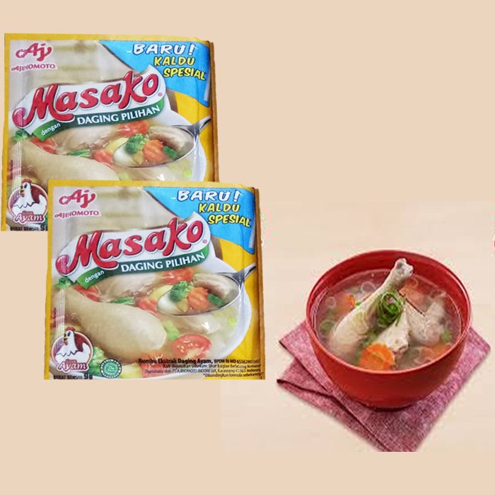 MASAKO Rasa Ayam Penyedap Rasa merupakan bumbu penyedap rasa yang terbuat dari bahan pilihan & rempah-rempah alami untuk menghasilkan masakan dengan citarasa gurih & rasa yang mantap dengan cepat. Mudah terserap sehingga cocok untuk beragam hidangan berkuah, aneka tumisan, dan lain-lain.