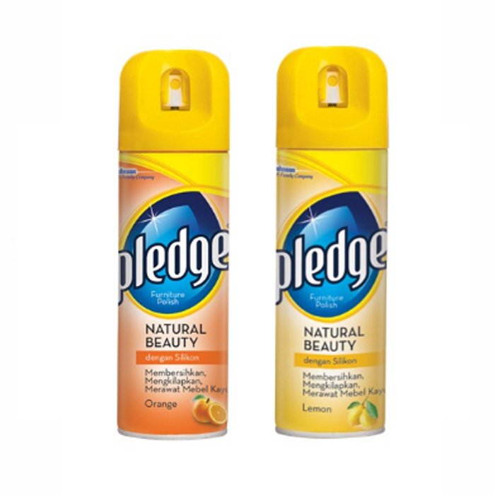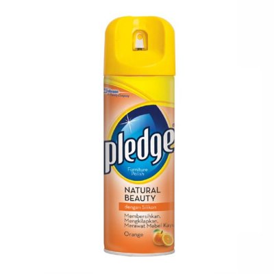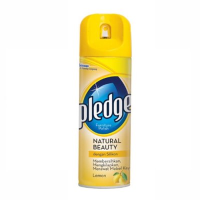 Merupakan pembersih furnitur dengan formula khusus yang mengandung silikon, sehingga dapat membersihkan, mengkilapkan, dan merawat semua jenis furnitur kayu. Pledge Aerosol tidak lengket dan berminyak, sehingga mencegah debu menempel.