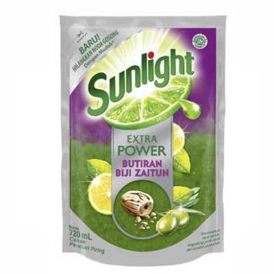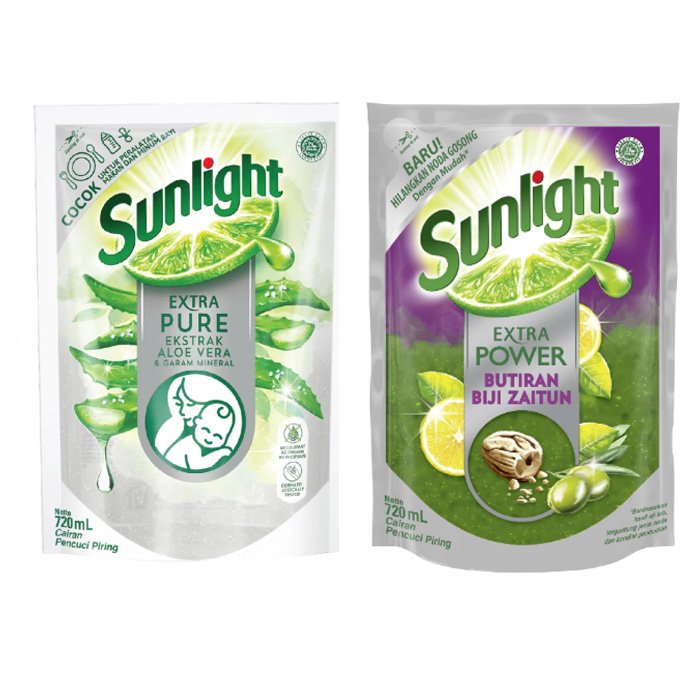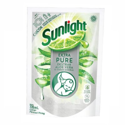 Sunlight Extra Pure dan Extra Power mengandung jeruk nipis asli,diperkaya dengan Ekstrak Aloe Vera dan garam Mineral alami.Formulasinya dilengkapi minyak esensial alami tanpa pewarna,Paraben,fosfat.Produk ini juga sudah teruji secara dermatologi dan cocok untuk membersihkan peralatan makan dan minum bayi,buah dan sayuran.