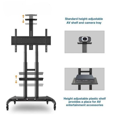 - Comes with adjustable audio-video shelf, Shelf dimension: Width 20”(506mm), Depth 12.7”(323mm), Another video tray for interactive video conferencing, ideal choices for offices, homes, schools, shopping malls and more.