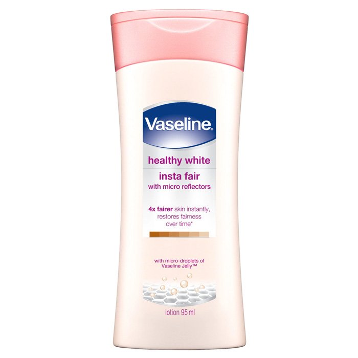 Terpapar sinar UV, polutan, dan hal berbahaya lain setiap hari dapat memicu produksi melanin, sehingga membuat kulitmu tampak lebih gelap dan rusak. Vaseline Healthy White Insta Fair mengandung micro-reflectors agar kulit 4x lebih cerah seketika* serta bahan-bahan aman, seperti Vitamin B3 alami yang membantu mengembalikan kecerahan kulit. Triple sunscreens menghalangi sinar UVA dan UVB untuk melindungi kecerahan kulit dari kerusakan lebih lanjut. Hasilnya adalah lotion yang memberikan kelembaban guna membantu memperbaiki kulit yang rusak dan gelap, membuatnya lebih sehat dan lebih cerah seketika.